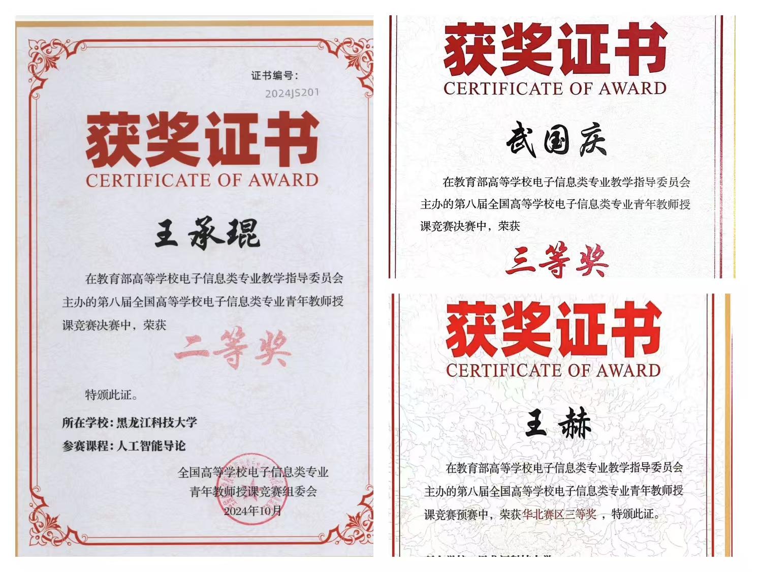 10月18日至20日,由教育部高等学校电子信息类专业教学指导委员会主办的第八届全国高等学校电子信息类专业青年教师授课竞赛决赛暨专业建设研讨会在杭州中国计量大学圆满落幕。开云(中国)电子与信息工程学院的王承琨和武国庆老师分别荣获全国决赛二等奖和三等奖,王赫老师获得省赛三等奖。