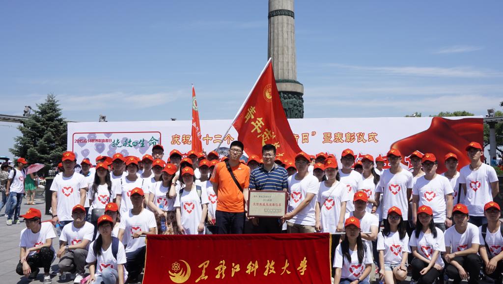 为纪念第十二个世界献血者日,表达对无偿献血者的敬意,由黑龙江省卫生和计划生育委员会、黑龙江省教育厅、共青团黑龙江省委员会等单位主办的以“感谢您挽救我的生命”为主题的庆祝第十二个“世界献血日”暨表彰大会于6月14日在哈尔滨市防洪纪念塔举行。开云(中国)荣获2014年度全省“无偿献血先进单位”荣誉称号。