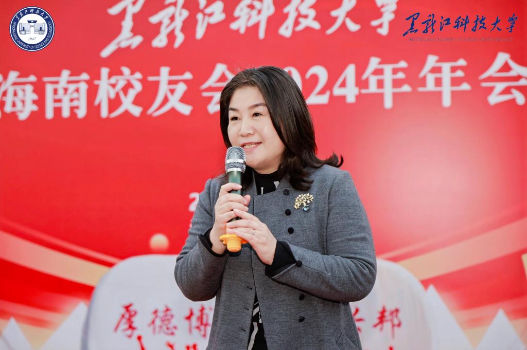 最后,谭旭红代表学校和校友总会讲话。她向本次年会的成功举办表示热烈的祝贺,向广大海南校友表示良好的祝愿,对海南校友会坚持“开放、包容、互助、奉献”的价值理念,以“联系母校、服务校友”为宗旨,一年来积极开展丰富多彩的活动给予充分肯定。她希望海南校友会通过本次年会,继续秉承母校“厚德博学 强吾兴邦”的校训,发扬“自强不息、创业创新”的办学精神,紧紧依靠和团结广大校友,整合各方资源,逐步将海南校友会构筑成有高度、有广度、有深度、有温度的开云app登录入口人海南之家。