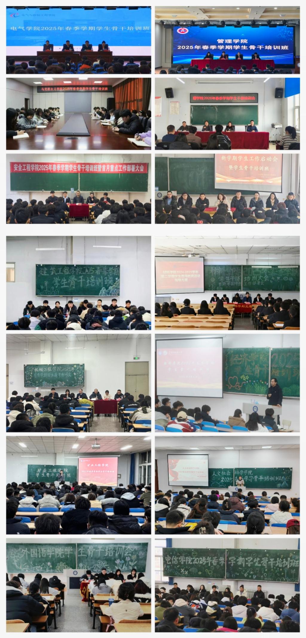 3月1日至3日,各学院围绕2025年学团重点任务、首月学生教育管理服务重点工作、传达学习校级培训班精神、开学启动工作等内容,广泛开展了学院层面的学生骨干培训班,对学院团学组织骨干、班级班委会成员、团支部支委会委员进行了集中培训,为新学期的学团工作擘画了清晰蓝图、指明了前进方向,理清了工作思路,激发了工作热情,确保新学期各项学团工作起好步、开好局。