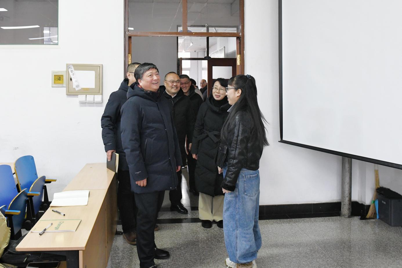 开学首日,校党委书记周宏力、校长孟上九深入教学楼、智慧教室以及教师休息室,全面了解教学运转情况,对课堂教学秩序、教师教学与学生学习情况进行了全面检查,听取教师授课,与师生进行面对面交流。