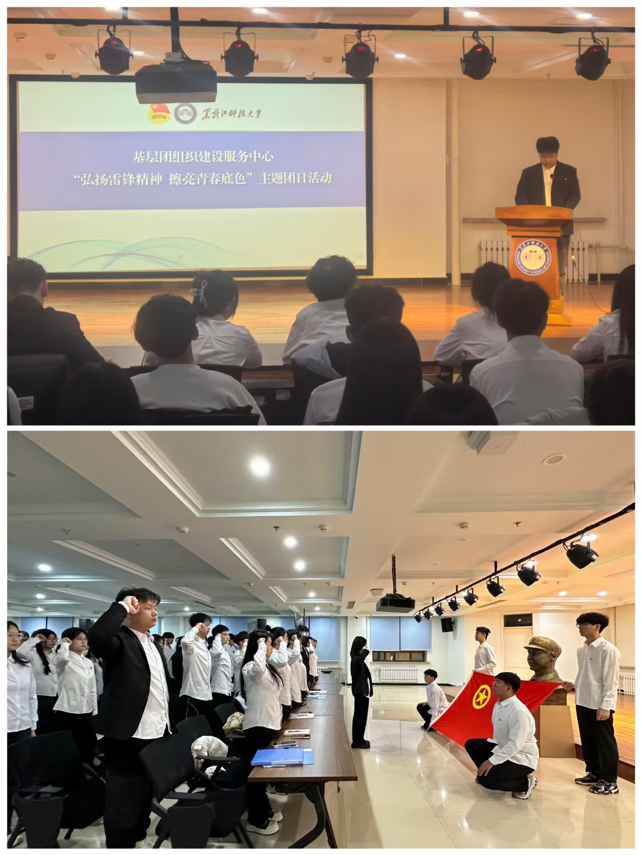 基层团组织建设服务中心团支部召开“弘扬雷锋精神、擦亮青春底色”主题团日活动,集中学习了习近平总书记对弘扬雷锋精神作出的重要论述,观看了《中国志愿者系列公益宣传片:郭明义》,在“雷锋”雕塑前重温入团誓词,凝聚起青年学生“学习雷锋,奉献爱心”的思想共识,引领同学们将“小我”融入“大我”的大爱胸怀、积“小善”为“大善”的行动发扬光大。