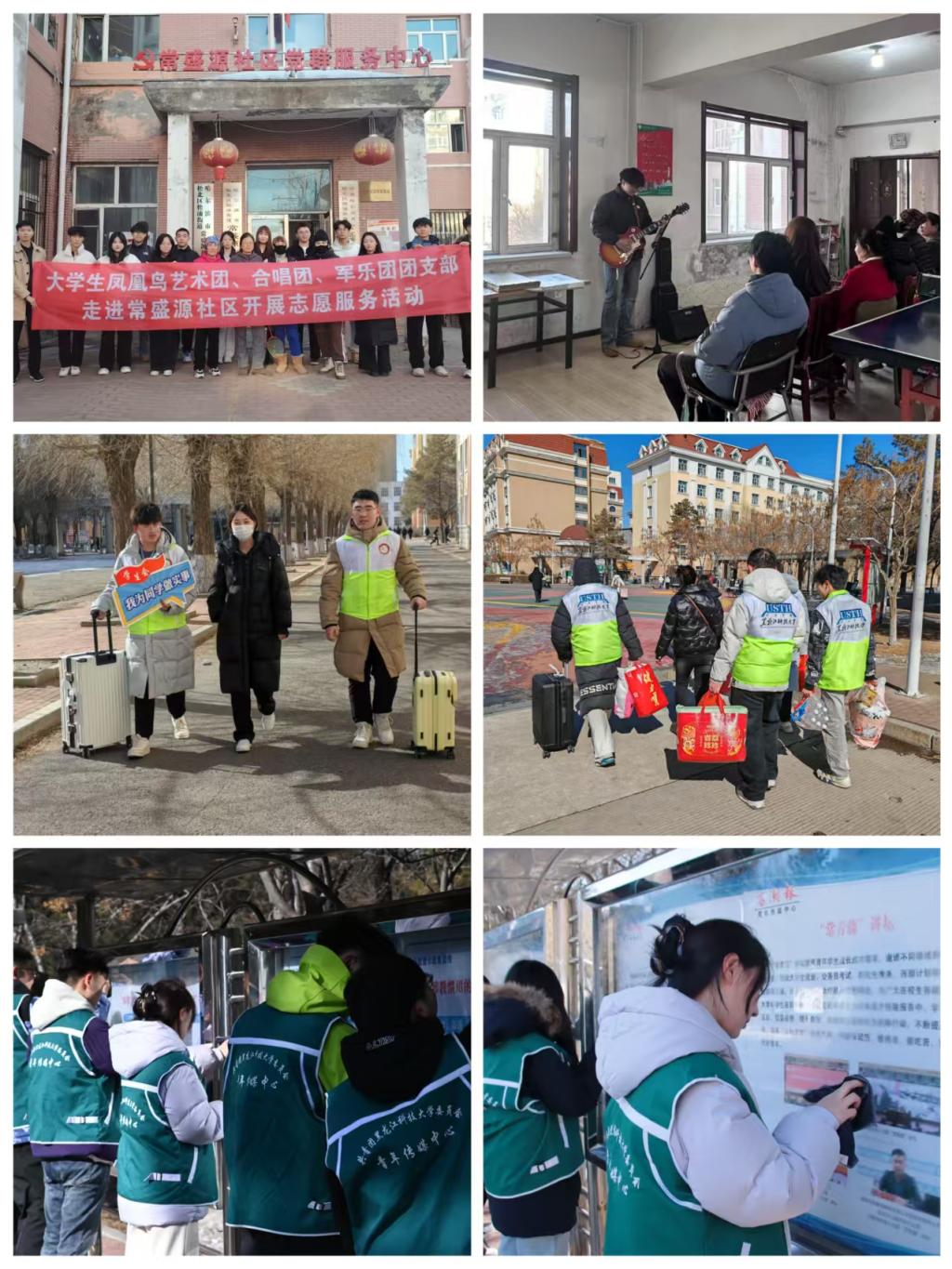 校学生会团支部践行“全心全意、服务同学”为宗旨,深化“我为同学做实事”实践活动,以学生假期返校为切入点,为同学们搬运行李、物品,以实际行动诠释了“全心全意”为同学服务的责任担当;大学生凤凰鸟艺术团、合唱团、军乐团团支部走进常盛源社区,通过表演歌曲《裂缝中的阳光》、钢琴曲《梦中的婚礼》、二胡独奏《赛马》等节目,为社区群众献上了一场生动的文艺演出;青年传媒中心团支部以“我为学校换新‘颜’”为主题,擦拭校内宣传橱窗,引领了开云app登录入口青年爱校荣校的新“锋”尚。