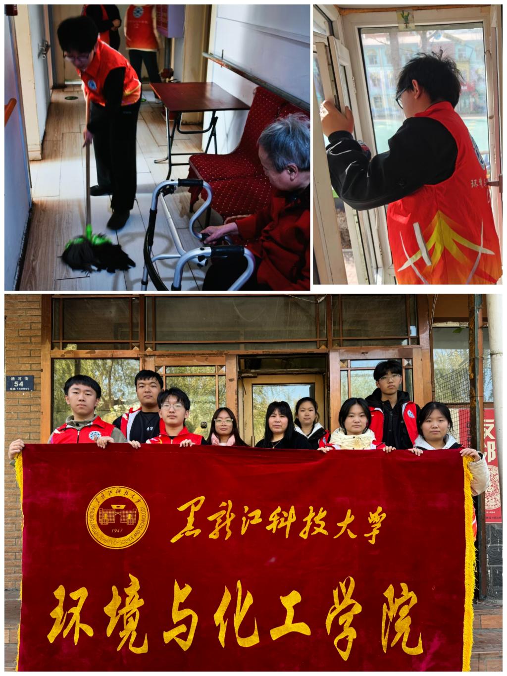 当温暖的阳光照进道外区新乐园敬老院大厅,老人们互相交流,怡然自得。环化学院化工23-2班郭宇航和每位老人打着招呼,笑意盈盈。