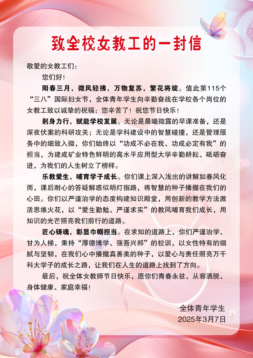 春风有信,祝福予你——致全校女教工的一封信
