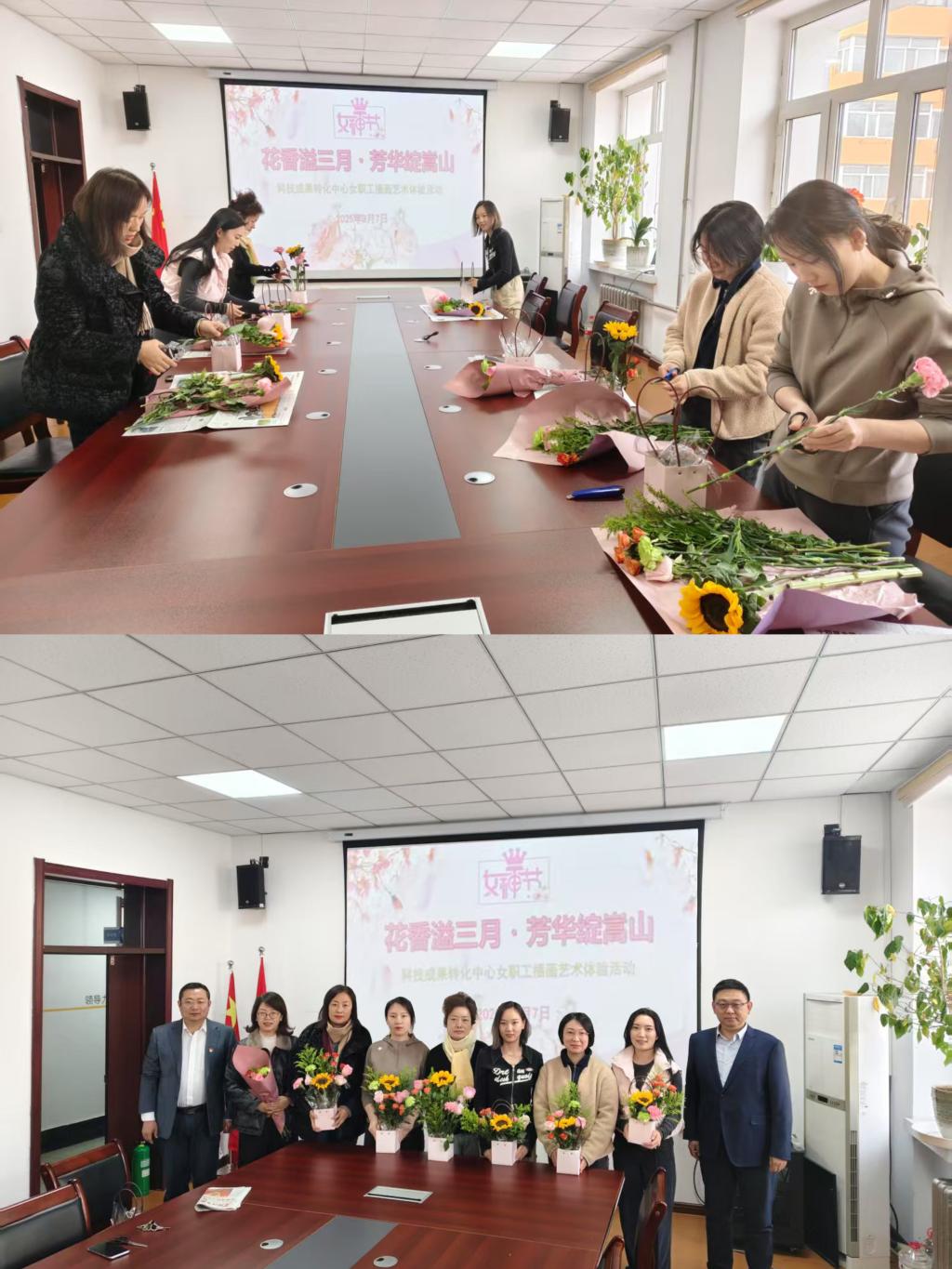 科技成果转化中心工会举办了“花香溢三月·芳华绽嵩山”插花艺术体验活动,全体女职工和主任李楠、副主任毕强、部分工会委员参加了活动。活动伊始,李楠代表中心向全体女职工致以节日问候。随后,在轻松愉悦的氛围中,女职工们充分发挥创意,将向日葵的热情、玫瑰的奔放、康乃馨的温馨、百合的香艳巧妙组合,制作各具特色的花篮。制作完成后,大家相互欣赏作品,分享设计心得,欢声笑语不断。本次活动不仅提升了女职工的艺术修养,还增强了获得感和幸福感。