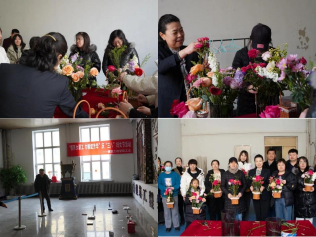 建筑工程学院工会举办了“情系女职工,巾帼绽芳华”主题庆祝活动,全院女教职工齐聚一堂。活动首先进行的是插花,女教职工们围坐在一起,认真挑选着自己心仪的花材,精心构思着作品的造型,大家根据花材的高低、颜色进行搭配,创作出一束束独具特色的作品。随后进行了趣味套圈活动,大家沉浸在欢乐的氛围中,尽情享受着节日的轻松与愉快。此次活动不仅是一次简单的庆祝聚会,更是一次心灵的放松与治愈,学院女教职工们以更加饱满的热情、昂扬的斗志为学院高质量发展贡献巾帼力量。