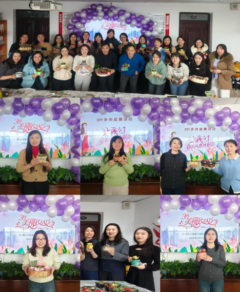 计算机与信息工程学院工会举办了“春意盎然,‘植’因有你”DIY多肉盆栽活动,吸引了多名女教职工参与。活动现场精心准备了品种繁多、形态各异的多肉植物以及精致的花盆、营养土等材料。在聆听完多肉植物的品种特性、养护技巧等知识讲解后,女教职工们充分发挥创意,将不同品种的多肉植物搭配组合,制作出一个个独具匠心的盆栽作品。活动现场欢声笑语不断,大家互相交流种植心得,分享创作灵感,在轻松愉快的氛围中感受节日的喜悦,一盆盆造型别致、充满生机的多肉盆栽便呈现在大家眼前,现场洋溢着欢乐祥和的气氛。