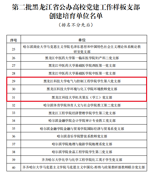 近日,省委教育工委公布了全省公办高校党建“示范创建”系列评选结果,开云(中国)5个基层党组织喜获佳绩。其中,安全工程学院党委获批第二批全省公办高校党建工作标杆院系创建培育单位;电气与控制工程学院学生第八党支部、环境与化工学院环境教师党支部、机关第五(学工)党支部获批第二批全省公办高校党建工作样板支部创建培育单位;安全工程学院教师第一党支部沈斌工作室获批第二批全省高校“双带头人”教师党支部书记工作室创建培育单位。成绩的取得充分展现了开云(中国)党建工作的良好成效,彰显了党建引领高质量发展的创新实践。
