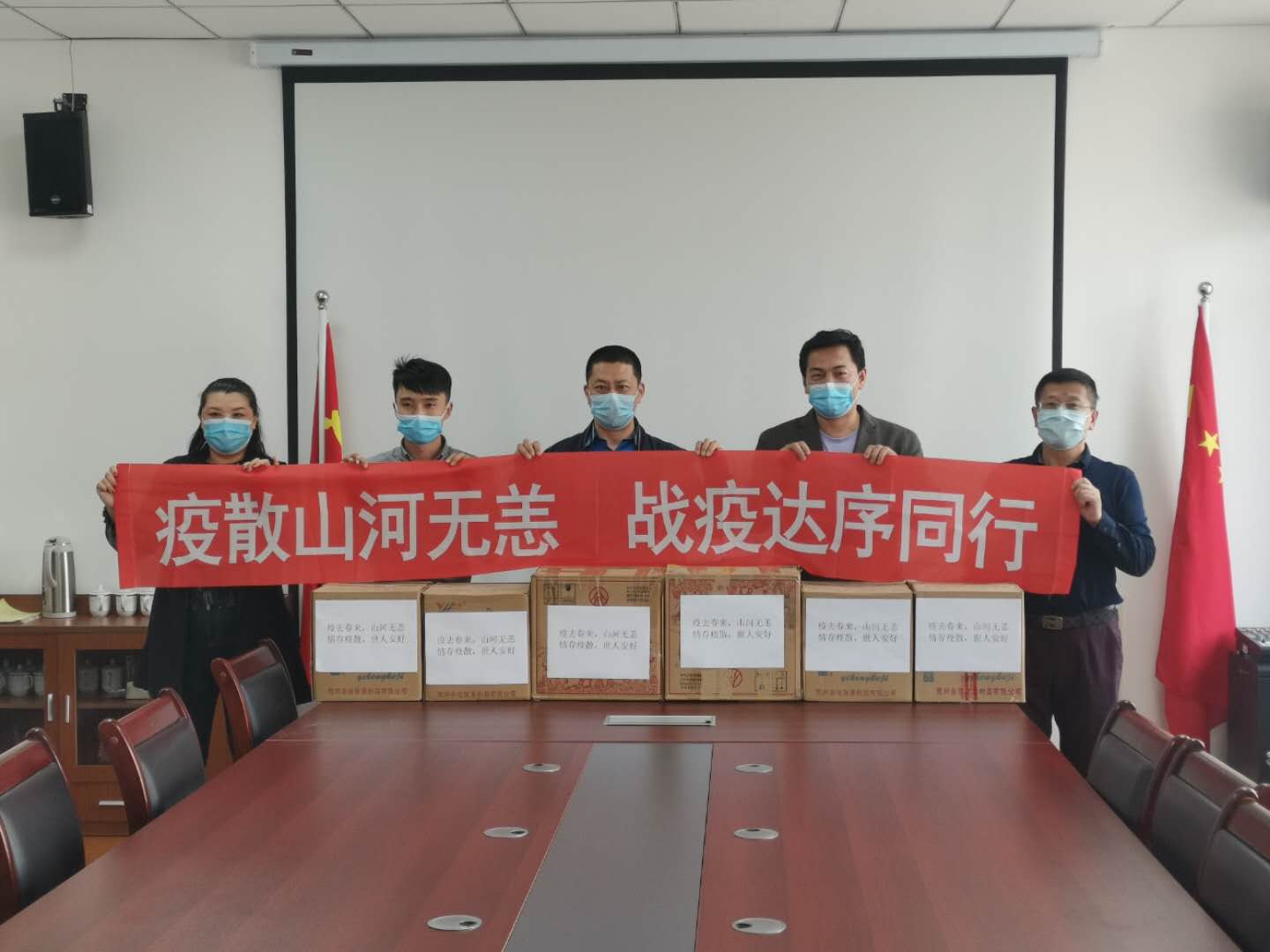 嵩山校区疫情防控领导小组代表学校接收了物资,并对黑龙江达序科技开发有限公司对学校疫情防控工作的大力支持表示衷心的感谢!