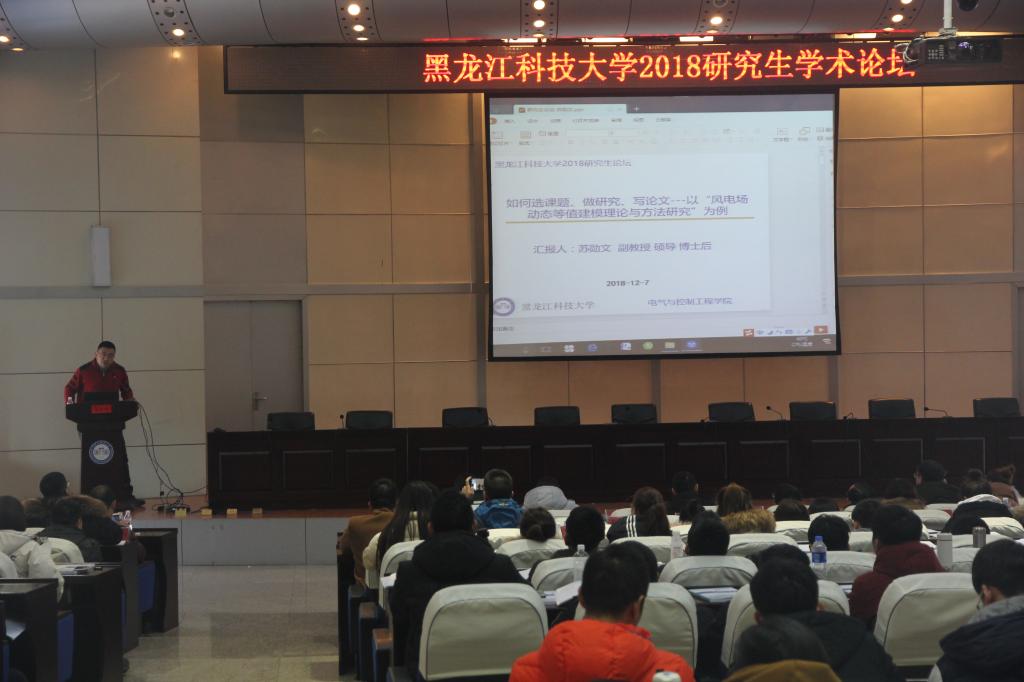 本次论坛以“科技引领、融合创新”,旨在“聆听学术思想、启迪创新思维、交流研究心得、引领学术发展”为主题展开。研究生学院党委书记刘海涛在开幕式上致辞,指出了举办研究生学术论坛的重要意义,并希望广大研究生通过学术论坛这个平台,充分展示学术风采和创新能力,交流不同学科专业领域思想,启迪智慧,开拓视野。论坛邀请经济学院院长、硕士生导师鞠耀绩教授,电气与控制工程学院硕士生导师苏勋文副教授分别作了题为《符合行为经济学规律的中国特色社会主义市场经济》、《如何选课题、做研究、写论文——以“风电场动态等值建模理论与方法研究”为例》的专题讲座。博士研究生代表李忠勤、硕士研究生代表袁昊和徐斌分别在学术论坛主会场做了优秀论文学术报告。
