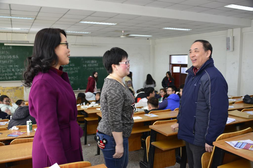 校长武俊峰来到科技大厦科N206教室,与统计16级1班和2班的同学们共同聆听倪岚老师讲授的《高等代数》课程。课后,武校长与倪岚老师进行了亲切的交谈,称赞倪老师讲授内容熟练、讲授效果生动、讲授方法得当,课堂学习氛围浓厚,积极地调动了学生听课的积极性、主动性,课堂效果十分明显。最后,武校长代表学校向倪老师送去节日祝福,并通过她向全校教师致以节日的祝贺!