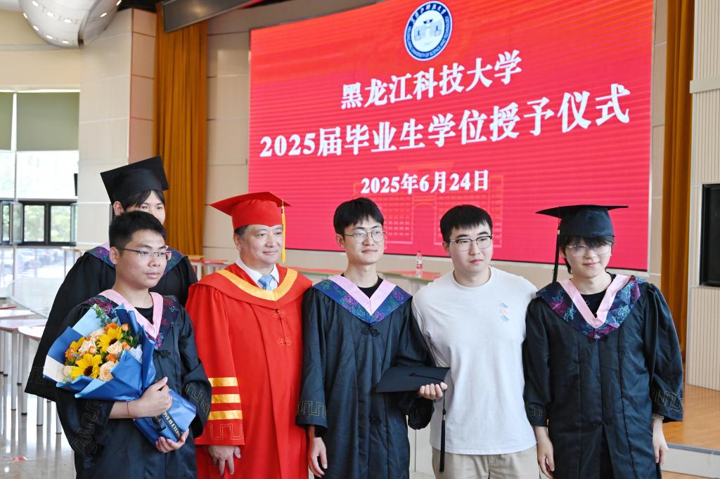 毕业典礼后,举行了学位授予仪式,校领导和校学位委员会委员为2025届硕士、学士毕业生拨穗正冠、颁发学位证书。