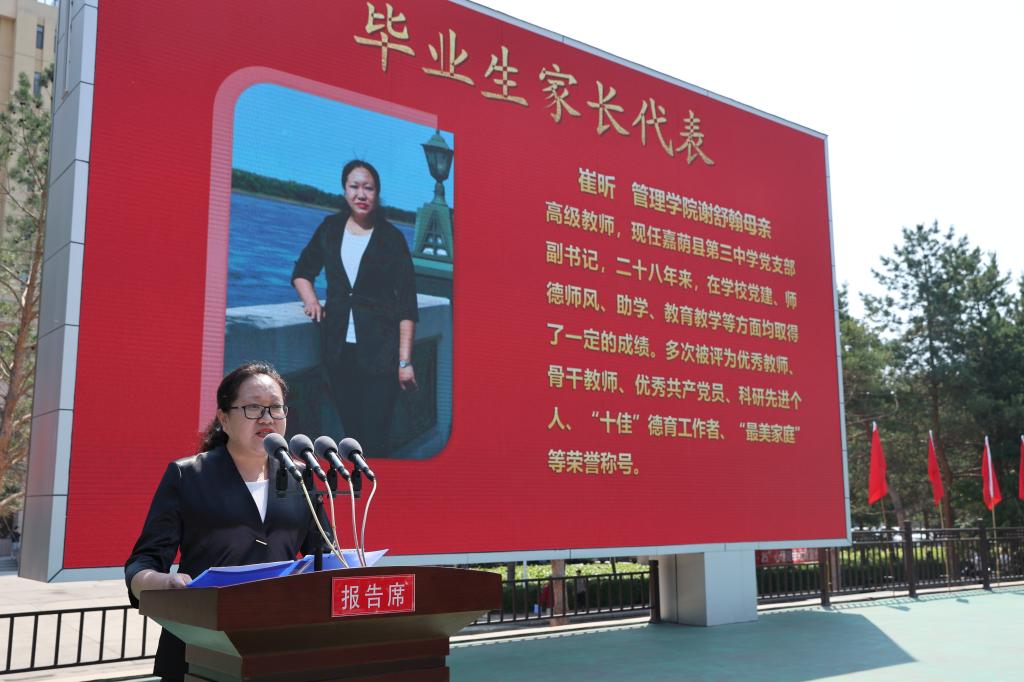 毕业生家长代表管理学院会计学专业本科毕业生谢舒翰家长崔昕女士,希望毕业生不忘母校、勇敢担当,做一名永远懂得感恩、积极面对生活、有责任感使命感的新时代“开云app登录入口人”。
