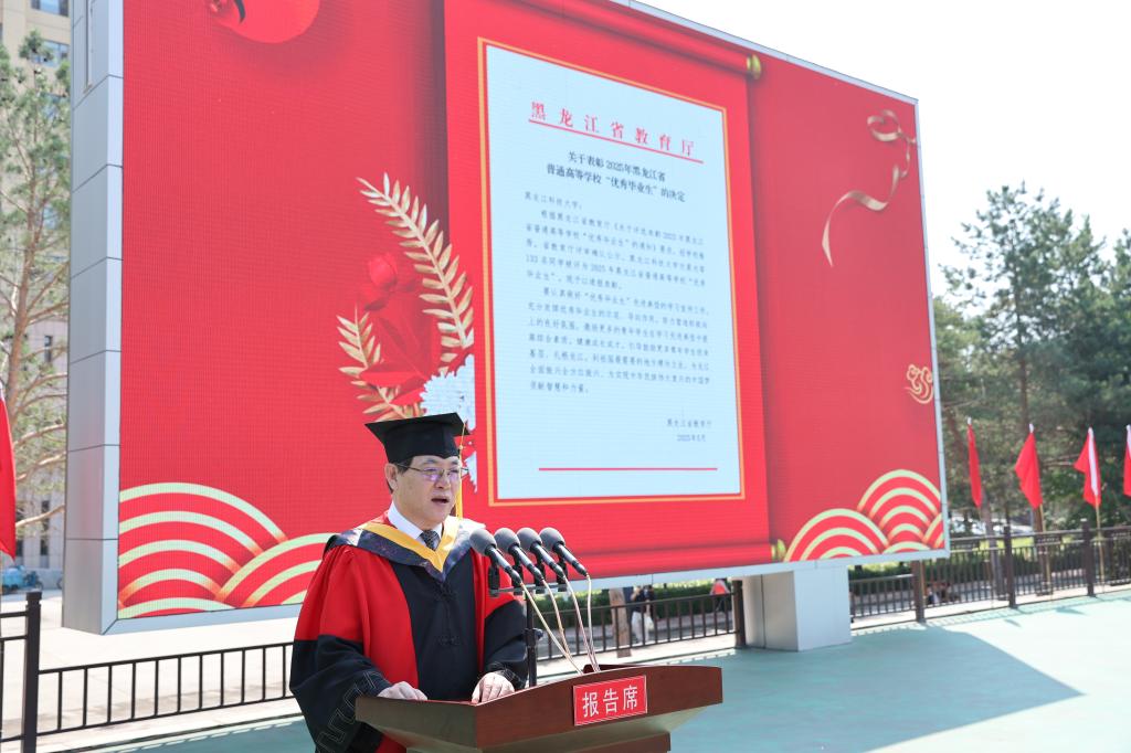 副校长赵振民宣读了省级“优秀毕业生”表彰决定