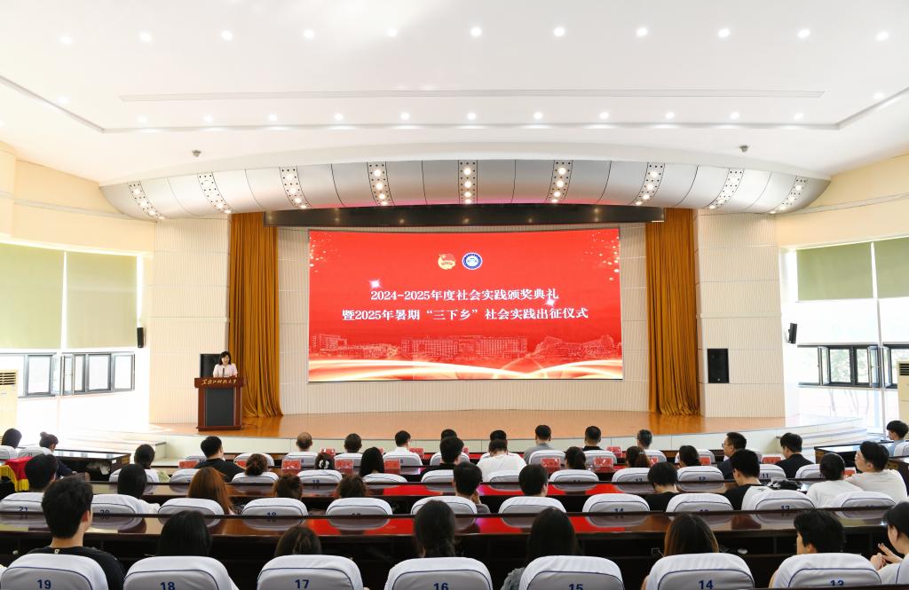 6月25日,学校2024-2025年度社会实践颁奖典礼暨2025年暑期“三下乡”社会实践出征仪式在办公楼报告厅举行。校党委副书记张宝成,副校长张保勇,党委宣传统战部、学生处、教务处、招就处、校团委等部门负责人,全体专职团干部,2025年暑期“三下乡”社会实践重点团队成员代表参加了仪式,仪式由校团委副书记马紫微主持。