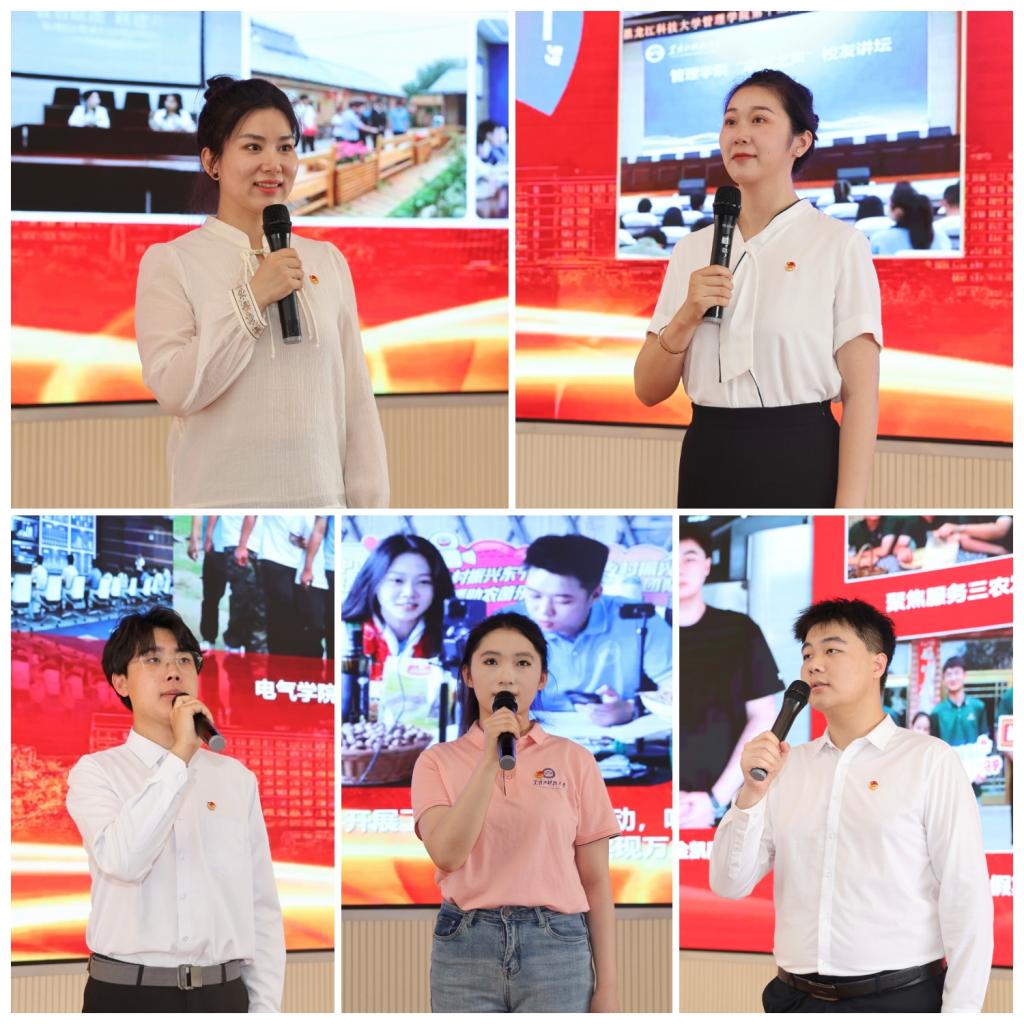 颁奖仪式后,全国优秀团队“管之行”电商助农实践团成员代表营销22-1班王晗同学作了典型经验交流;全省优秀个人电气学院团委书记陈慧琦、管理学院团委书记王紫麒从社会实践规划亮点、基地建设、融入学校“大思政”体系举措等方面介绍了所在单位2024-2025年度社会实践主要亮点做法,汇报了今年暑期“三下乡”社会实践活动的总体设计和准备情况;全省优秀团队成员代表安全23-3班金凯阳、测控22-4班王禹贺两位同学汇报了所在团队今年暑期“三下乡”社会实践活动的目标和实施路径。