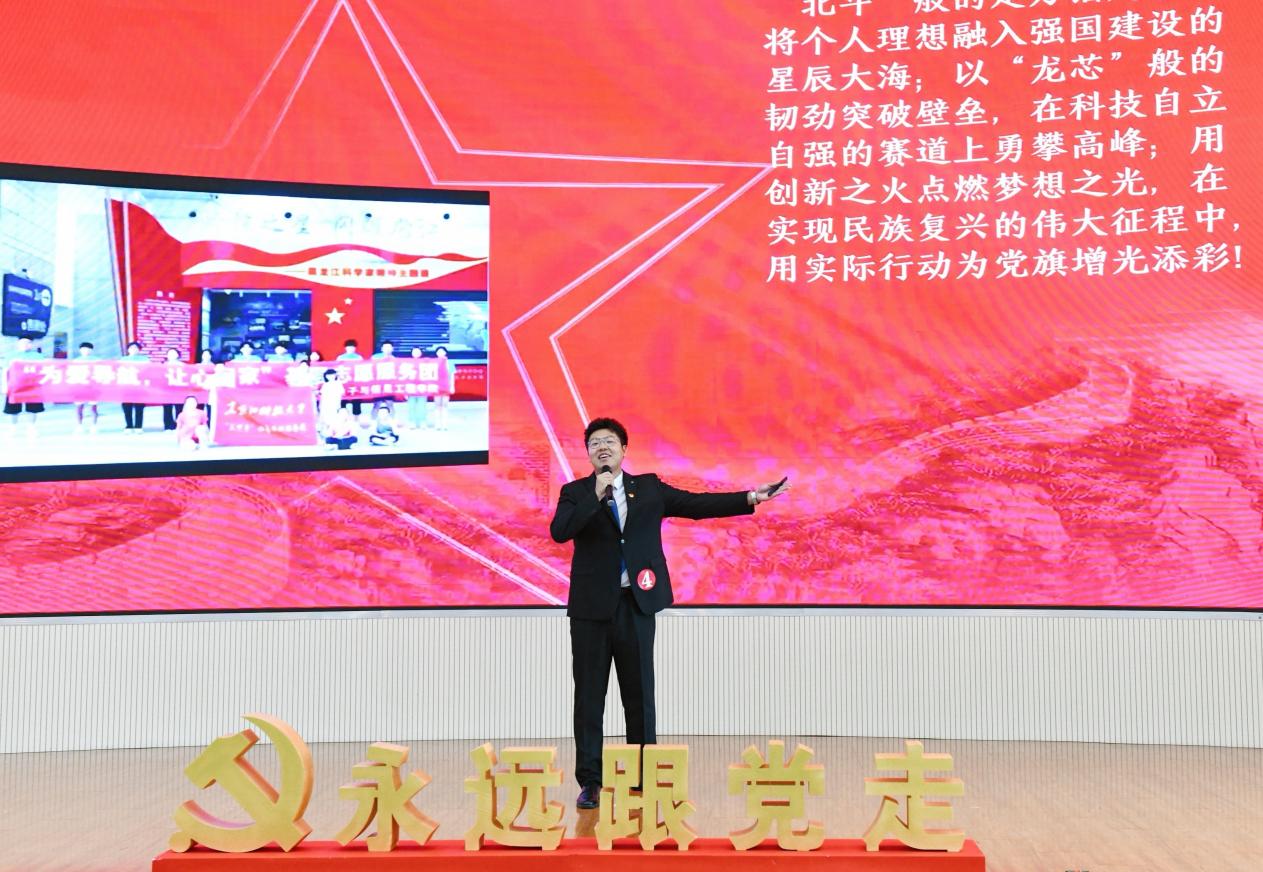 本次比赛由党委组织部主办、管理学院党委承办,得到了全校各基层党组织的积极响应,共有来自16个学院的近30名大学生党员报名参赛。经过初赛、复赛的激烈比拼,10名优秀学生党员脱颖而出,成功晋级决赛。决赛中,选手们紧扣“我为党旗添光彩”主题,以青春视角诠释理想信念,以鲜活叙事传递使命担当。他们立足新时代新要求,结合自身和身边党员入党及成长经历,讲述了一桩桩饱含温度的奋斗故事——有刻苦努力学习许党报国的奋斗足迹、有倾心服务师生展现担当作为的感人故事、有积极融入和投身教育强国科技强国人才强国建设的先锋榜样、有扎根基层志愿服务传递无私大爱的温暖瞬间,串联起党员与党和国家、人民的深刻联结和情感共鸣,让“听党话、感党恩、跟党走”的准则融入学生党员的血脉、注入每一名党员的灵魂。