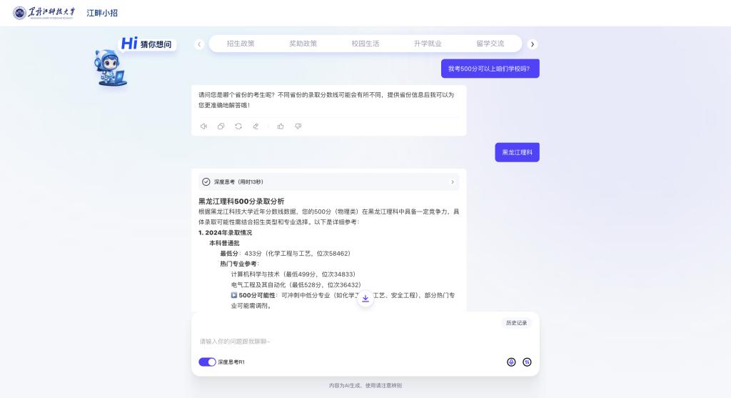随着高考改革的深入推进和招生规模的不断扩大,考生和家长对于招生咨询的需求日益增长。传统的招生咨询方式,如电话咨询、现场咨询等,受到时间和空间的限制,难以满足考生和家长的多样化需求。为了解决这一问题,学校积极探索创新,引入人工智能技术,设置AI招生助手,搭建了智能化的招生咨询问答系统。
