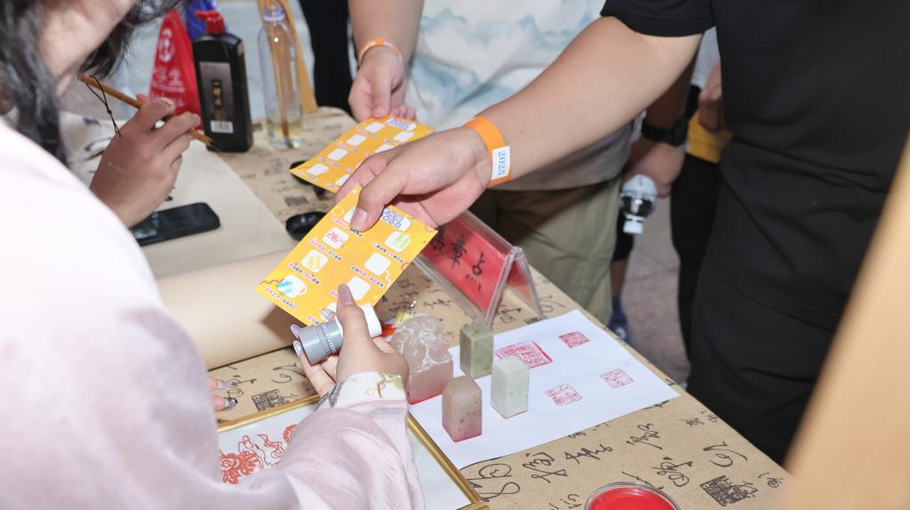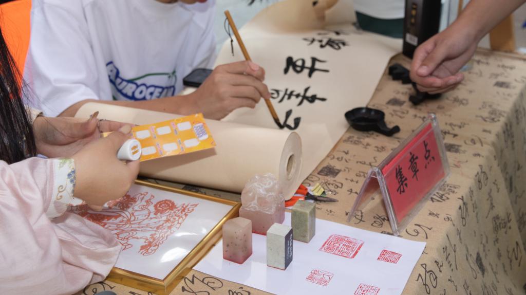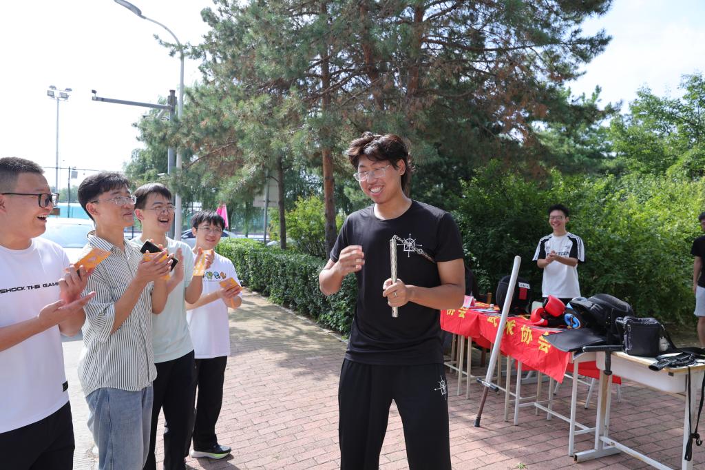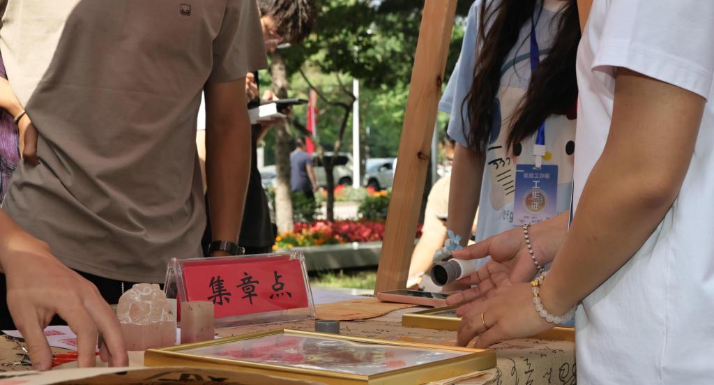 图书馆前的传统文化类社团打卡点,学长学姐进行现场书画、剪纸创作,吸引新生观赏;篮球场旁的体育类社团展位,摆放着各类运动装备供大家体验;劲牛附近的科技类社团站点,同学们演示着原创的科技作品…… 每个打卡点都充满欢声笑语,社团成员们不仅为完成打卡的新生盖上专属印章,并详细介绍巡礼月后续的社团活动,为2025级新同学迅速融入大学生活,感受繁荣的校园文化奠定了基础。