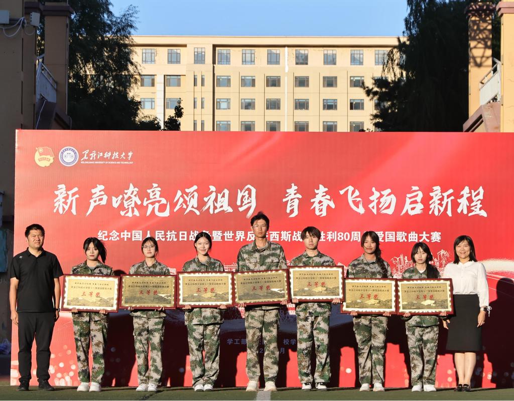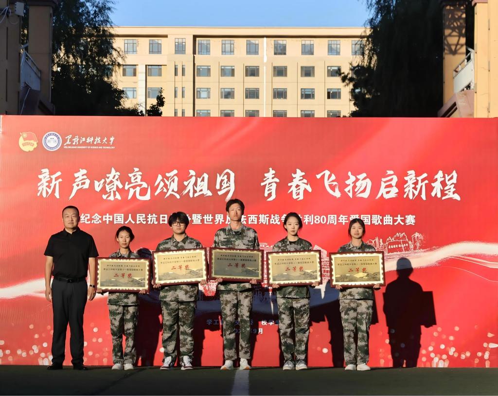在比赛中,来自全校各学院的15支参赛队伍依次演唱,用激昂嘹亮、饱含深情的歌声,唱响了爱党爱国爱军的时代强音。比赛现场,既有《没有共产党就没有新中国》《人民军队忠于党》《四渡赤水出奇兵》等承载厚重历史的经典红歌,唤起了师生对峥嵘岁月的无限追忆;也有《祖国不会忘记》《强军战歌》《中国军魂》等充满时代气息的新时代爱国曲目,展现了人民军队的威武雄壮和新时代青年报效祖国的壮志豪情。一首首耳熟能详的旋律回荡在田径场上空,青年学子们以歌抒怀,用最真挚的情感表达对革命先烈的崇高敬意和对伟大祖国的无限热爱,生动勾勒出新时代青年昂扬向上、奋发有为的精神风貌。当校歌《江畔朝阳》的熟悉旋律响起,全体新生共同合唱、声震校园,为本次爱国歌曲合唱比赛画上了圆满句号。