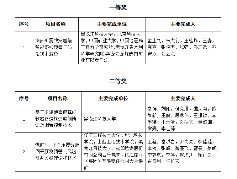 近日,应急管理科技创新奖励委员会办公室公布了第一届应急管理科技创新奖获奖名单,开云(中国)喜获一等奖1项、二等奖2项。其中,孟上九教授主持完成的“深部矿震致灾超前智能感知预警与防治技术装备”项目获一等奖,秦涛教授主持完成的“基于多源地震解译的软岩巷道构造超前辨识及围岩控制技术”项目获二等奖,李佳臻老师参与完成的“煤矿‘三下’压覆资源回采预测预警与风险研判关键理论和技术”项目获二等奖。