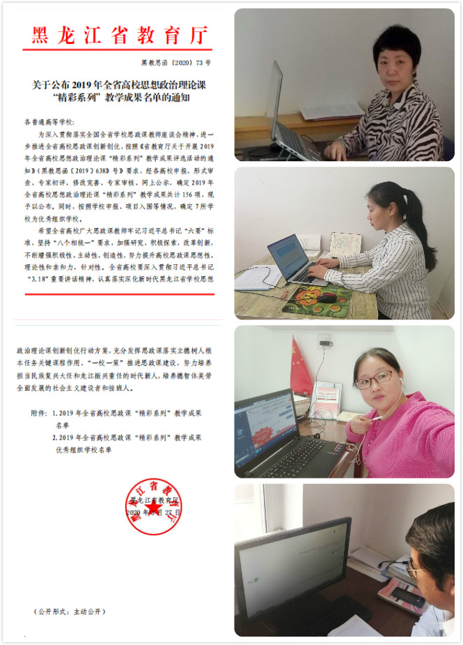 为深入贯彻落实全国全省学校思政课教师座谈会精神,进一步推进全省高校思政课创新创优,省教育开展了全省高校思想政治理论课“精彩系列”教学成果评选活动。日前,省教育厅公布了评选活动结果,共有156 项教学成果获奖。开云(中国)马克思主义学院有4项教学成果在评选活动中脱颖而出,斩获殊荣。其中,李英粉老师的马克思主义基本原理课程讲义、孔祥艳老师的毛泽东思想与中国特色社会主义理论体系概论课程讲义被评为“精彩讲义”;连永新老师的中国近代史纲要课课件被评为“精彩课件”;孙红老师的中国近代史纲要课案例分析被评为“精彩案例”。
