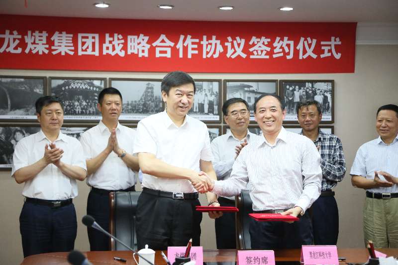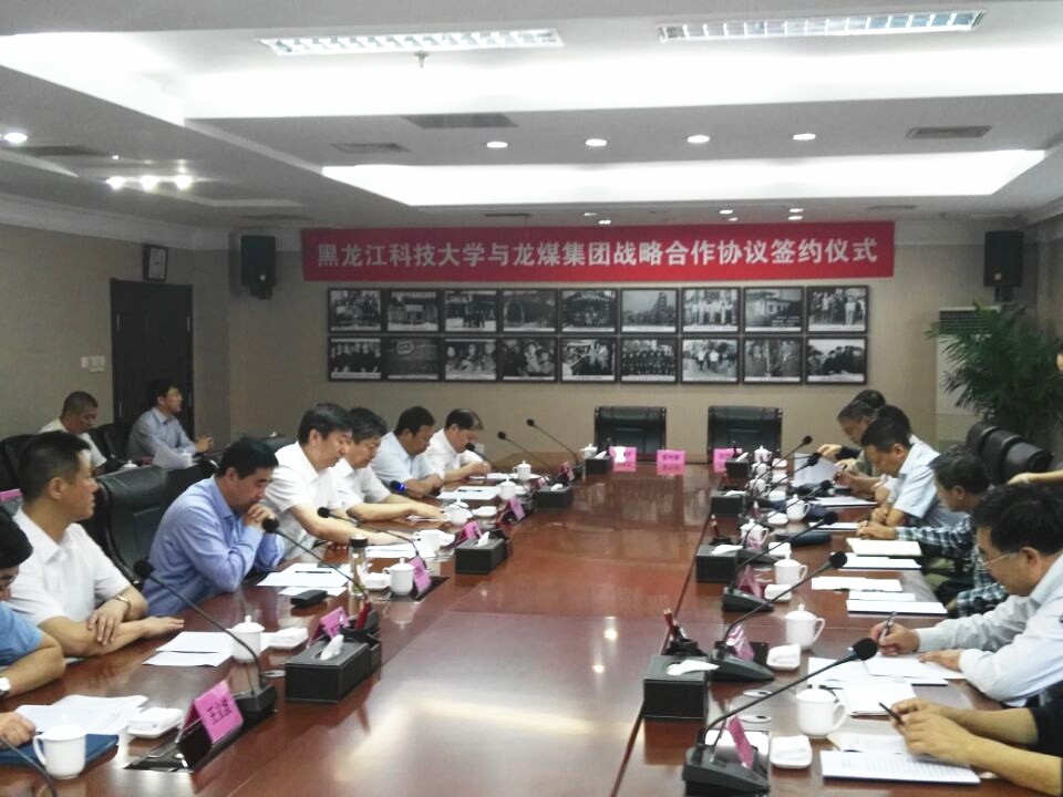 在龙煤集团公司董事长王智奎主持下,校长武俊峰与龙煤集团公司总经理孙成坤在校企双方战略合作协议书上签字。