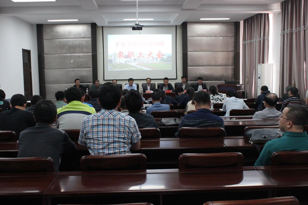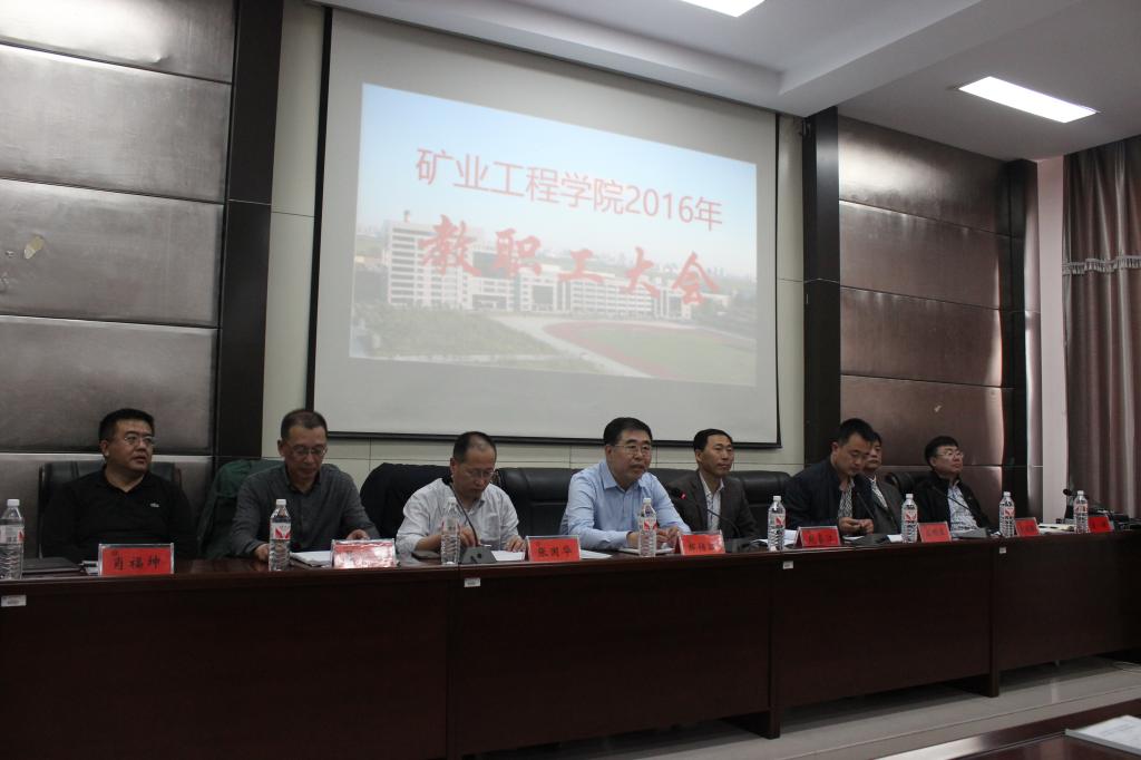 5月3日下午,矿业工程学院在学院学术报告厅召开2016年度教职工大会,副校长郝传波出席会议并讲话。学院党政班子成员、全体教职工参加会议。大会由学院党委副书记、工会主席高明星主持。