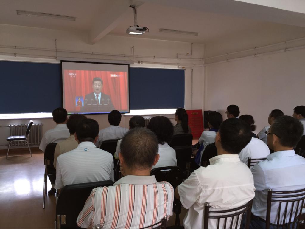 全校各单位、各部门根据大会召开的时间和本单位的实际,纷纷组织师生党员在多媒体教室、会议室、办公室、学生寝室和学生食堂等地集中收看收听了庆祝大会现场直播实况。