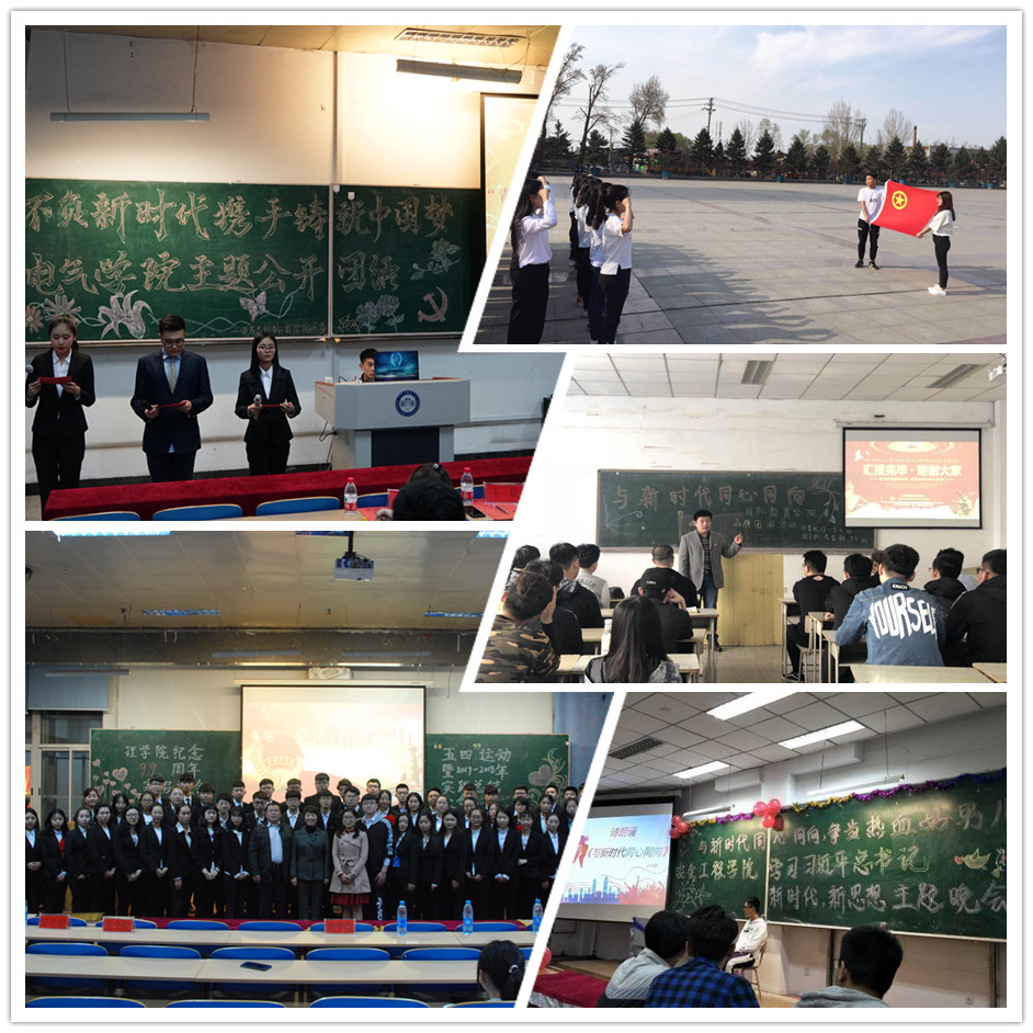 近段时间以来,各学院分团委按照校团委的工作部署,围绕传承“五四”精神,开展了“与新时代同心同向”主题团日活动、我与团旗团徽合张影、重温入团誓词主题教育、专职团干部讲团课等主题教育活动,如安全学院开展的“与新时代同心同向 争当热血好男儿”主题晚会,电气学院“青春不负新时代、携手铸就中国梦”大型公开团活,计算机学院举办“学习十九大精神、争做‘三有’好青年演讲比赛”等。