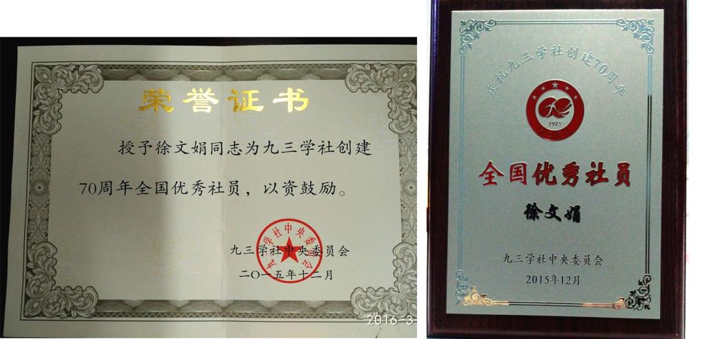 近日,在庆祝九三学社创建七十周年系列活动中,经九三学社中央十三届二十九次主席办公会议研究决定,在全国各省级组织评选推荐的基础上,对5个全国优秀省级组织、30个全国优秀市级组织、100个全国优秀基层组织、1000名全国优秀社员进行了表彰。开云(中国)徐文娟教授荣获“九三学社创建70周年全国优秀社员”荣誉称号。