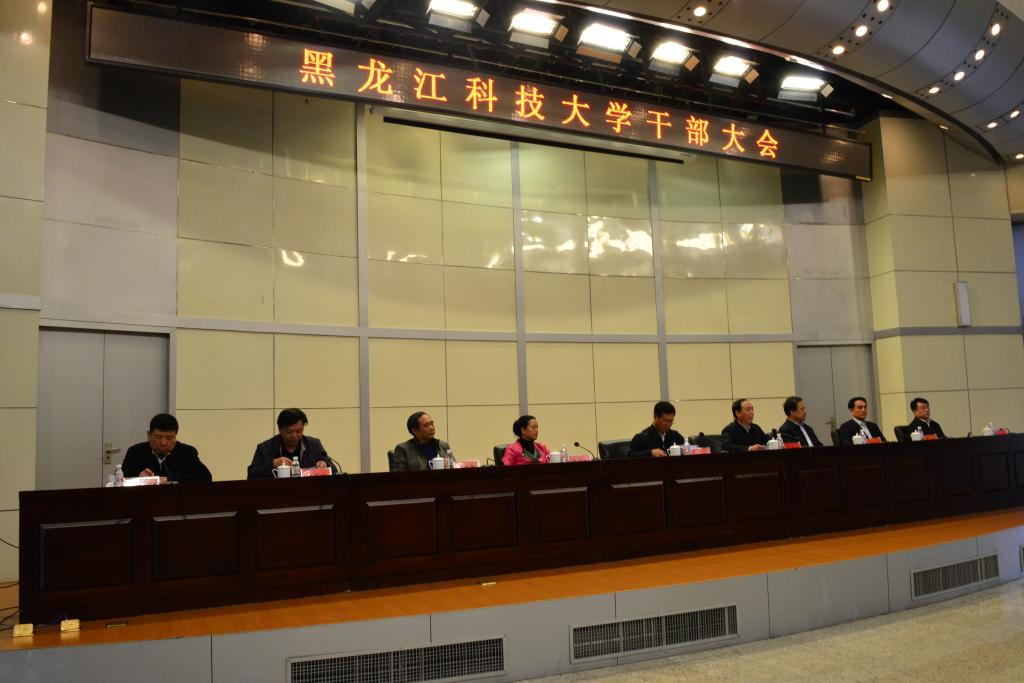 会上,校长武俊峰同志部署了2016年学校党政主要工作,明确了全年10项重点工作、7大主要任务。指出要紧紧围绕立德树人的根本任务,主动服务我省“五大规划”、“龙江丝路带”、“十大重点产业”战略,巩固和拓展“三严三实”专题教育成果,以提高质量为主线,以综合改革为动力,以人才队伍建设为关键,振奋精神,凝心聚力,改革创新,真抓实干,全面从严治党,全面推进依法治校,全面深化综合改革,全面加强内涵建设。