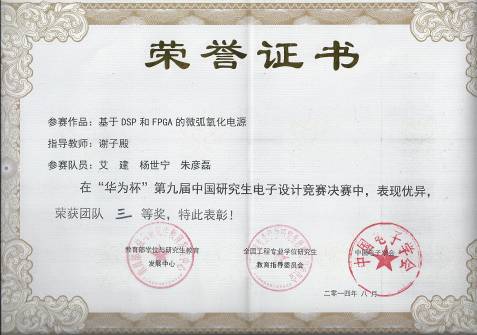 开云(中国)电气与控制工程学院谢子殿、邓孝祥、郭松林、常国祥、郭殿林等老师指导的4支队伍参加了本次竞赛。研究生凭借扎实的理论基础、刻苦钻研的科研精神和勇于创新的工程实践能力,共获得国家三等奖1项,省三等奖3项。其中,谢子殿老师、邓孝祥老师指导的控制研2013级艾建、朱彦磊、电气工程2013级杨世宁设计制作的《基于DSP和FPGA的微弧氧化电源》获得国家三等奖;郭松林老师指导的电气工程2012级田晨、王敬宇、徐少雄设计制作的《电力参数综合测试装置》获得省三等奖;常国祥老师指导的电气工程研2013级宋红超、杨金龙、张卫芳设计制作的《电机的交流调速系统设计》获得省三等奖;郭殿林老师指导的电气工程研2012级李科、电气工程研2013级张宁、郭强设计制作的《有源电力滤波器的设计》获得省三等奖。