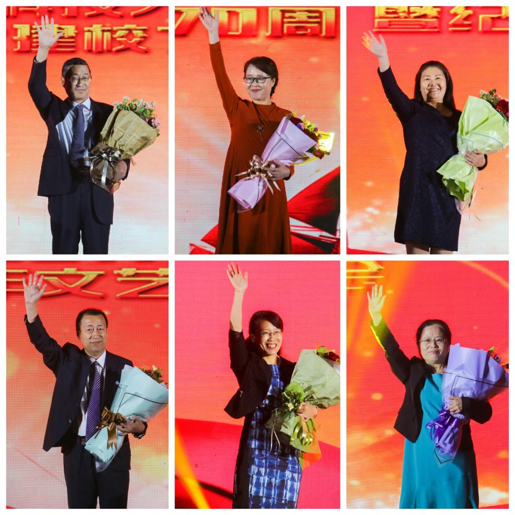 整场晚会在《难忘今宵》的旋律中落下帷幕,观演领导和校友代表登台,同参演的600余名演员亲切握手并合影留念。