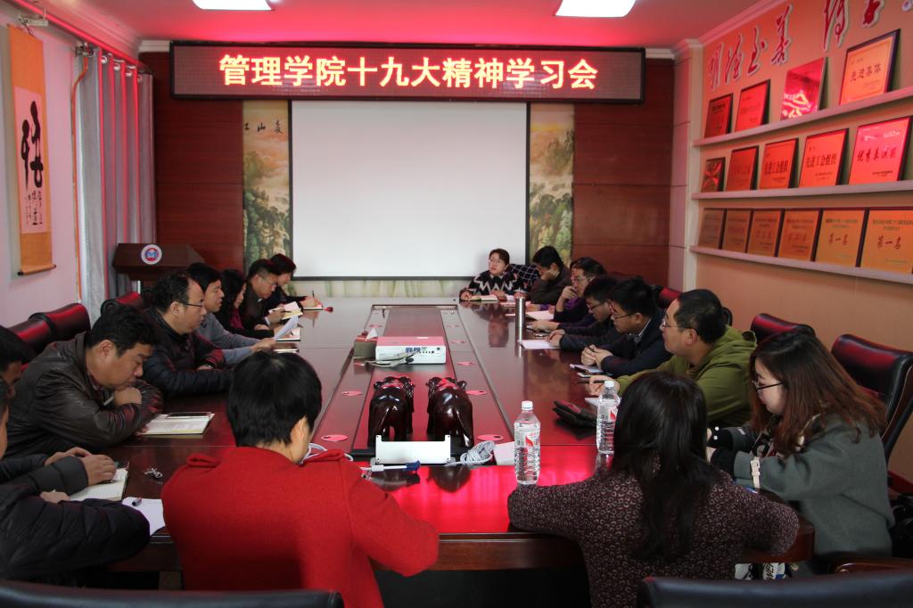 11月8日,管理学院党委召开了十九大精神学习会。学院领导班子成员、各党支部书记、各科(中心)负责人参加了会议。