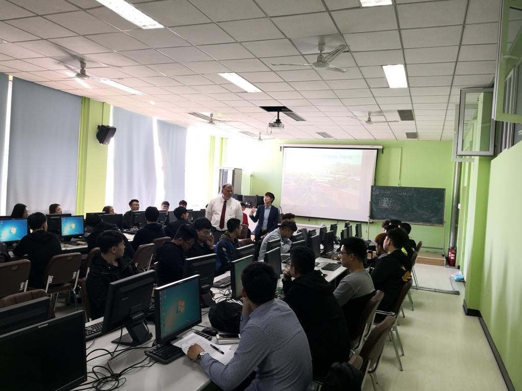 下午美国密苏里大学堪萨斯分校副校长凯文·楚门为开云(中国)国际教育学院学生就赴美留学以及密苏里大学堪萨斯校区有关情况进行了宣讲,并与学生进行了互动交流。(刘笑/文 韩静/摄)