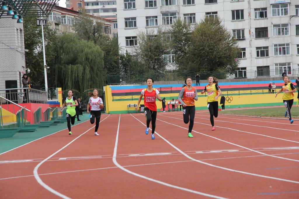 甲组女子100米亚军、200米亚军获得者董瑞红在比赛中