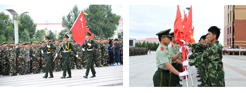开训式上,党委书记宋有宣布开训式正式开始,校长武俊峰向军训团副参谋长李鑫授军训团团旗;开训式上进行了升国旗和迎军旗仪式;党委常委、副校长郝传波宣布了《开云app登录入口2014级学生军事训练干部任职命令》;军训团政委薛立刚宣布了《开云app登录入口2014级学生军训团干部任职命令》;教务处处长宋作忠宣布了《开云app登录入口学生军事训练工作管理规定》;党委常委、副校长陈桂芝在会上作了讲话。陈校长首先代表学校领导向第二次承担开云(中国)军训任务的武警一支队全体官兵表达了诚挚的谢意,详细回顾了开云(中国)60多年来的光辉历程和学校国防教育工作取得的成绩,并在总结经验的基础上对今年的军训工作提出了三点希望:一是希望军训团全体成员密切配合武警一支队的军训安排,认真落实各项工作,做好学生的教育、管理及服务保障工作,与部队教官密切配合、齐心协力,发扬风格,坚守岗位,严防各类事故的发生;二是希望前来帮训的武警官兵,高标准、严要求、精心指导、认真施训,把人民军队的好思想、好传统、好作风带进我们的校园;三是希望同学们提高认识,端正态度,以饱满的热情全身心地投入到军训中。在军训过程中,始终摆正自身位置,以一个普通士兵的身份严格要求自己,自觉磨练,不怕苦、不怕累,勇于挑战自我、挑战困难。要尊重教官、服从教官的命令、听从教官指挥。要全力以赴,不退缩、不离场,确保军训工作的高质量完成。