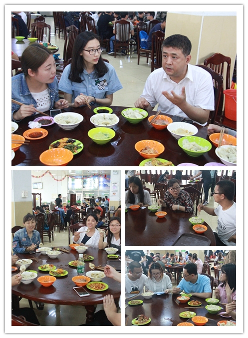 20日11:30,在毕业生口中常常提到的“沁芳园大酒店”。外国语学院党政领导、辅导员为毕业生端上了一碗碗热气腾腾的饺子,端上的是饺子,送上的是浓浓的师生情谊,党委书记唐立国为毕业生送上深深的祝愿。