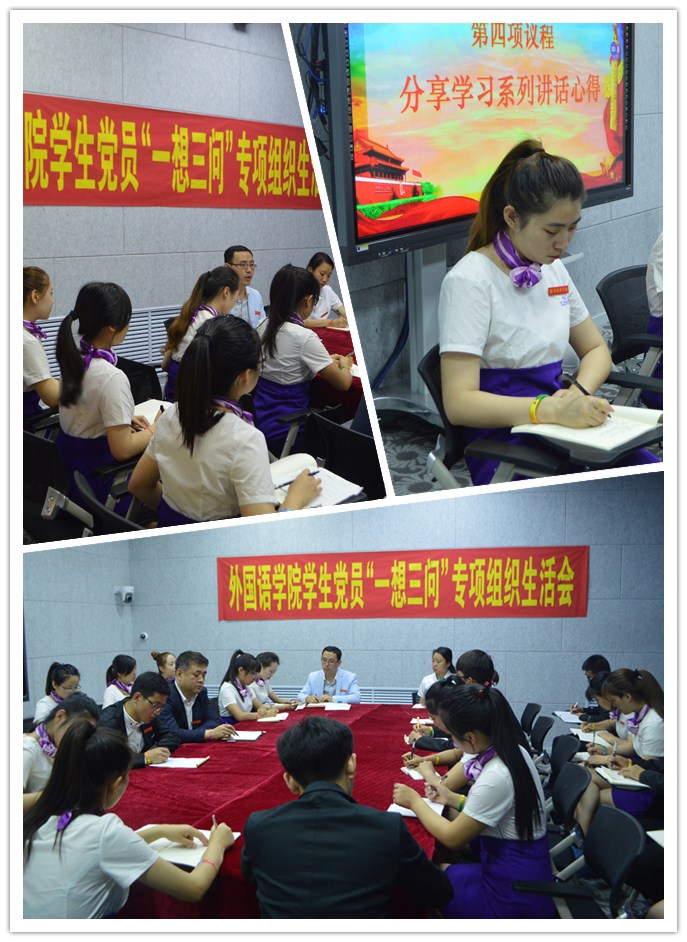 17日9:00,科技大厦。外国语学院开展毕业生党员“一想‘三问’专项组织生活会”,毕业生党员重点围绕“重温党章想一想,面对党旗问三问——上大学为了什么?在校学会了什么?毕业后能留下什么?”几项内容展开了专项汇报。学生党员尹月感慨到,在外国语学院的四年是收获颇丰的四年,收获了知识、收获了友情、收获了外国语学院给予学生的满满的爱,做为一名毕业生党员我深爱着党,深爱着母校、深爱的培养我们的学院,在今后的日子里将用青春去报效党、报效国家。