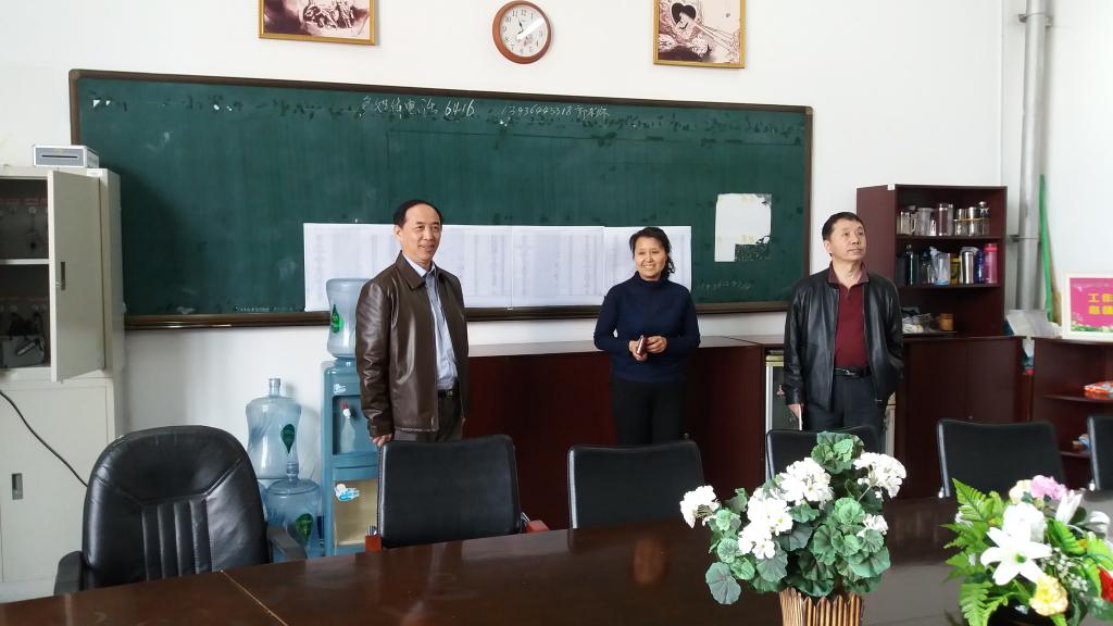 4月25日上午 ,校长武俊峰、副校长郝传波带领学校办公室、教务处、后勤处、资产处等部门负责人,深入科技大厦、教学主楼,现场办公解决教师休息室和外国语学院语音室改造问题。