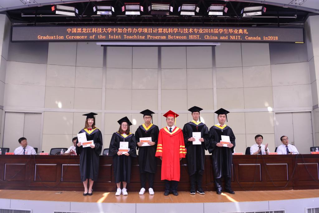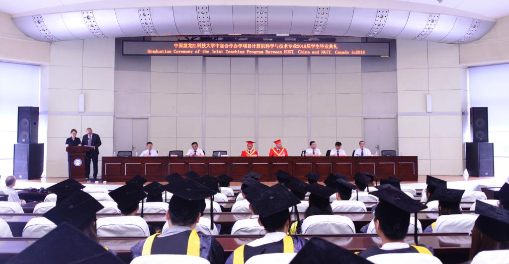 6月26日上午,国际教育学院在报告厅举行了中国开云app登录入口中加合作办学项目计算机科学与技术专业2018届毕业生毕业典礼。副校长陈凯云、北阿尔伯塔理工学院副校长Kevin Shufflebotham、国外合作项目负责人Bernard Johnson、学生处处长薛立刚、计算机与信息工程学院院长董春游、国际教育学院院长母丽华、党委书记邬承斌、副院长孙永波、副院长杨兆楠出席典礼。全体2018届中加计算机专业毕业生、中加计算机专业在校生代表参加了典礼。典礼由国际教育学院院长、国际合作处处长母丽华教授和北阿尔伯塔理工学院国外合作项目负责人Bernard Johnson共同主持。