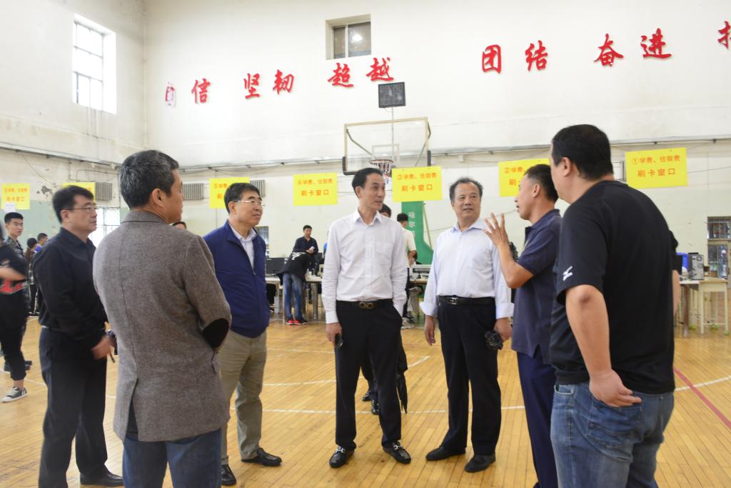 9月6日,2018级新生正式报到第一天,校长郝传波、党委副书记张明华、副校长毕广民、于成学深入迎新一线实地检查指导迎新工作。
