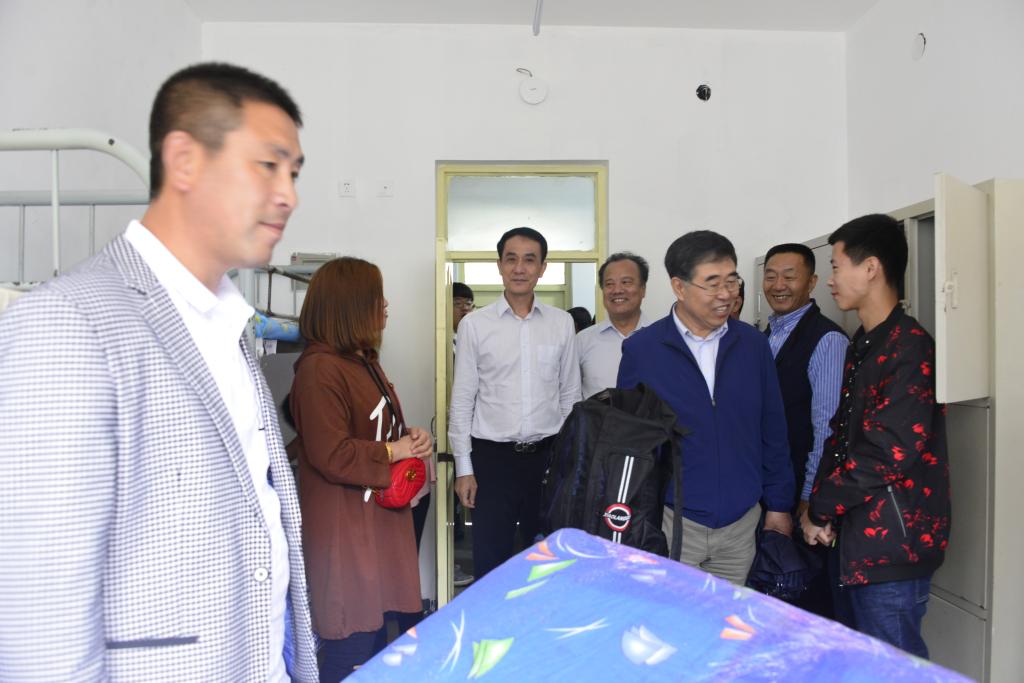 郝传波一行深入学生食堂、宿舍、中水厂、变电所、校医院,检查指导工作,详细了解2018级新同学的饮食、住宿、医疗等生活设施保障情况,对各项准备工作给予充分肯定。