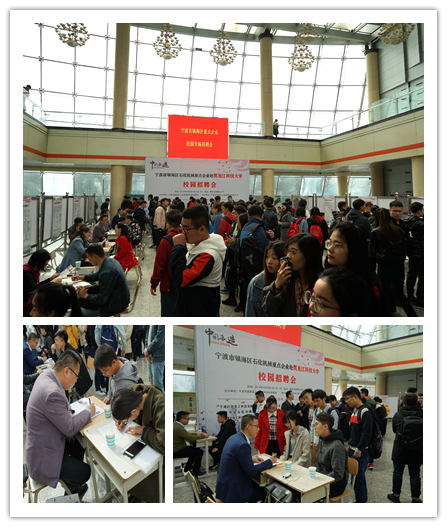 宁波中金石化有限公司、宁波富德能源有限公司、宁波巨化化工有限公司等12家企业参会,招聘岗位涵盖化工、环境、电信、自动化、机械、电气、材料、测控、计算机、市场营销、安全、会计、英语、国际贸易等专业,提供就业岗位478个。