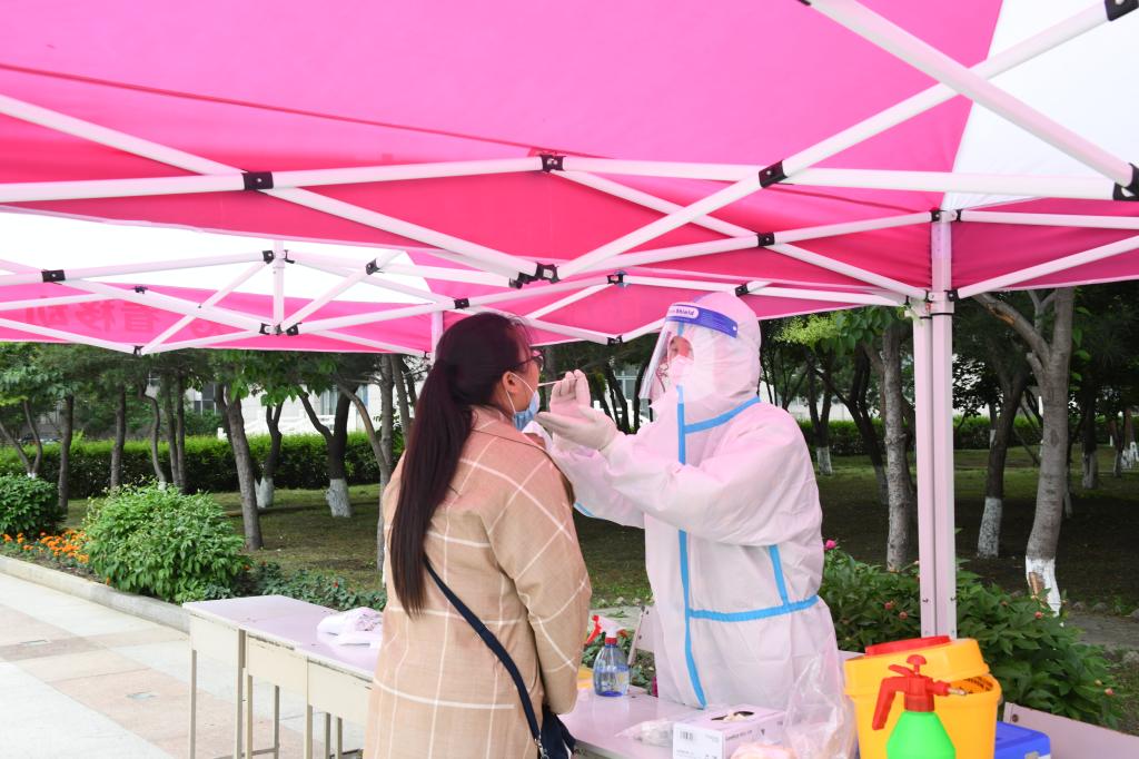 为确保检测工作有序、安全进行,避免人员聚集,学校在校园分设3处核酸检测取样点,校医院指派专人配合检测机构进行检测。检测现场秩序井然,检测人员全程佩戴口罩,保持1.5米以上安全距离,依次排队接受了核酸(咽拭子)检测。检测完的教职员工自觉迅速离开,不扎堆,不聚集。