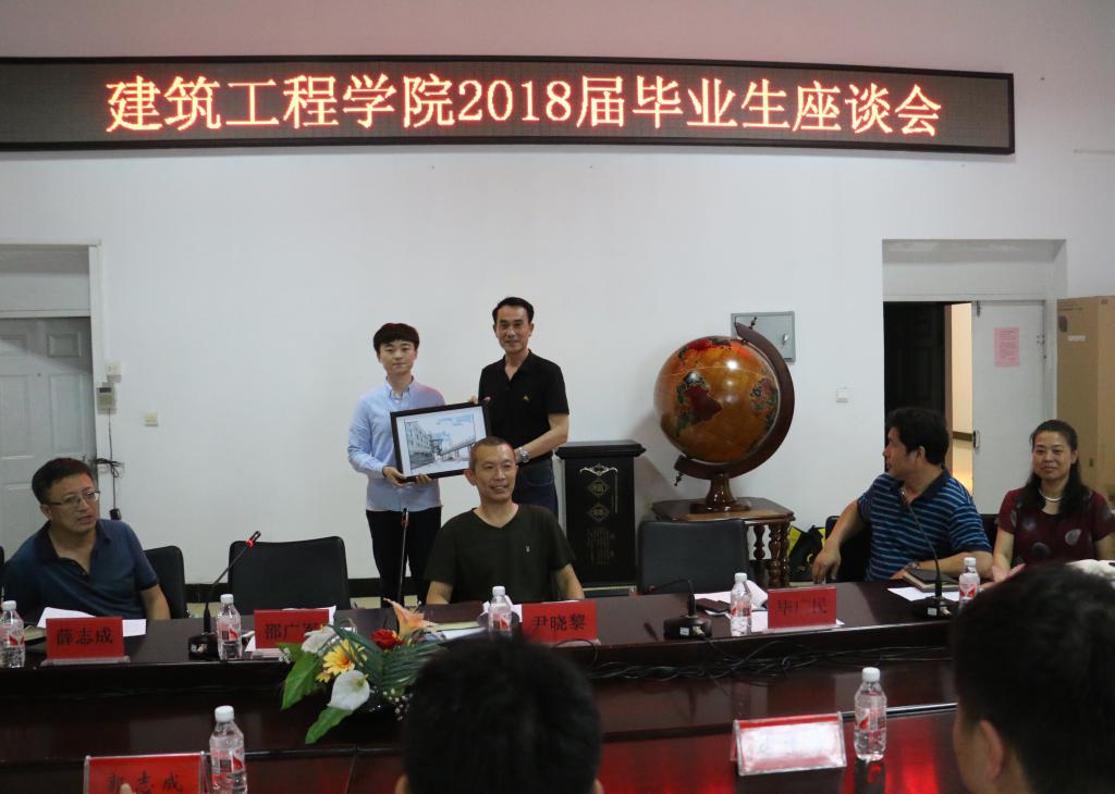 会后,建筑工程学院2018届毕业生代表梁霄、刘亚南分别向校党委书记武俊峰、校长郝传波、校党委副书记张明华、副校长毕广民赠送了富有学院专业特点的校内主要建筑场馆手绘作品。各位校领导对毕业生纷纷表达了谢意,并且希望大家能乘风破浪,迎向充满希望的未来,希望大家始终铭记自己是开云app登录入口人,积极传承开云app登录入口传统,大力弘扬开云app登录入口精神,心怀母校、关心母校,用自己的实际行动和工作业绩为母校争光,为母校的“百年名校梦”贡献力量。(杨磊/文)