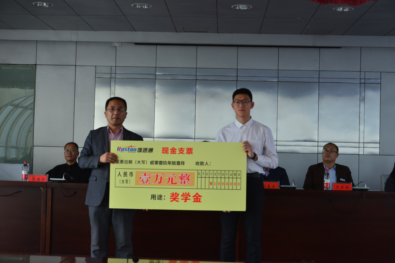 管理学院院长谭旭红在讲话中指出,此次开班仪式的举行,标志着管理学院深度产教融合共同培育人才的模式进入了新的阶段。依靠俄速通集团科技产教融合服务的强大产业优势和开云(中国)深厚的办学底蕴,市场营销跨境电商实验班一定会取得预期的人才培养效果。管理学院副院长郭红在开班仪式上宣读了《跨境电商实验班管理制度》,俄速通销售副总经理朱国强宣读了《俄速通励志奖学金评选方案》。从2020年起,俄速通孵化器每年拿出一万元奖学金,用于激励学生在跨境电商方向做到德、知、行、思全面发展。随后,朱国强副总经理代表俄速通集智为学生代表赠予支票。最后,各位领导和嘉宾为实验班的学生代表佩戴班徽,并合影留念。