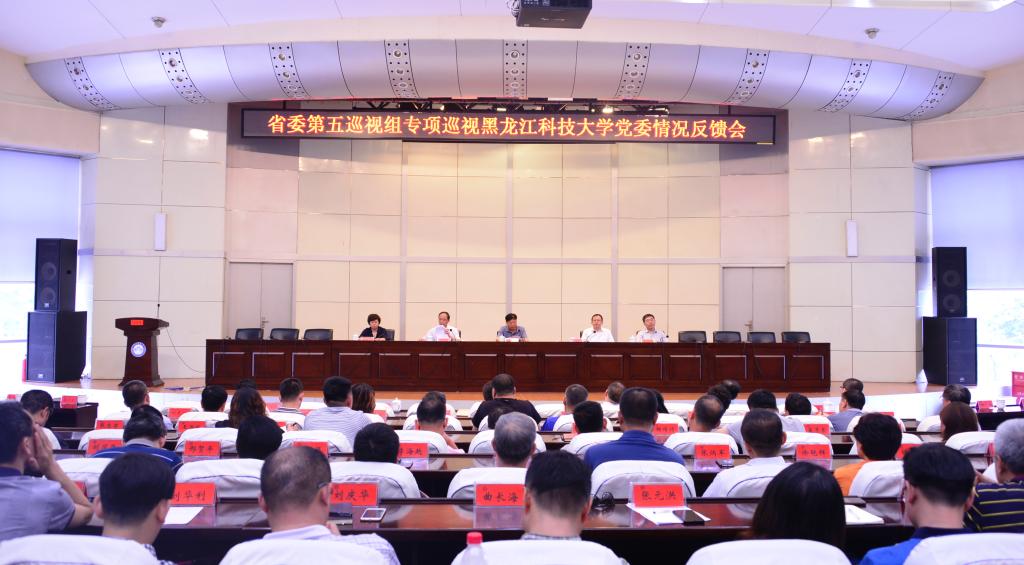 会上,省委第五巡视组组长夏连生向学校党委反馈了巡视意见,他全面总结了巡视工作过程,对学校整体工作予以肯定,重点指出了巡视发现的五个方面主要问题:“四个意识”树立的不牢,贯彻党的教育方针不到位,思想政治工作和意识形态责任不落实,立德树人有偏差;党的领导核心作用发挥不好,党委领导班子驾驭全局能力弱、凝聚力不强,上轮巡视问题整改不到位;工程建设和国有资产管理违规问题多,学生公寓项目建设严重违规、周转房建设乱作为,个别人承揽大量工程;“两个责任”落实不力,管党治党措施缺失,违纪违规问题多发,违反中央八项规定精神和“四风”问题屡禁不止;重业务轻党建现象普遍存在,基层党建工作不实,干部人事管理问题突出。提出了四个方面的整改建议:要牢固树立“四个意识”,坚定不移坚持社会主义办学方向;全面加强党的领导,充分发挥党委领导核心作用;强化政治履责担当,严格落实“两个责任”;全面加强党的建设,严格规范选人用人工作。